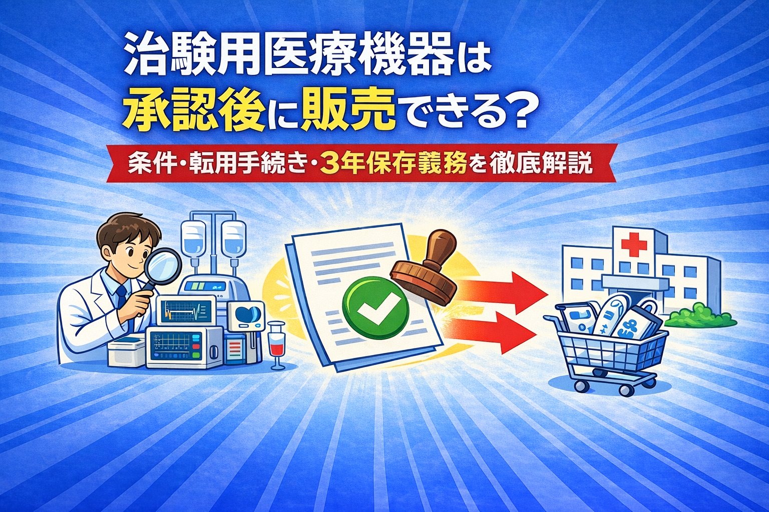 - 治験用医療機器は承認後に販売できる?条件・転用手続き・3年保存義務を徹底解説