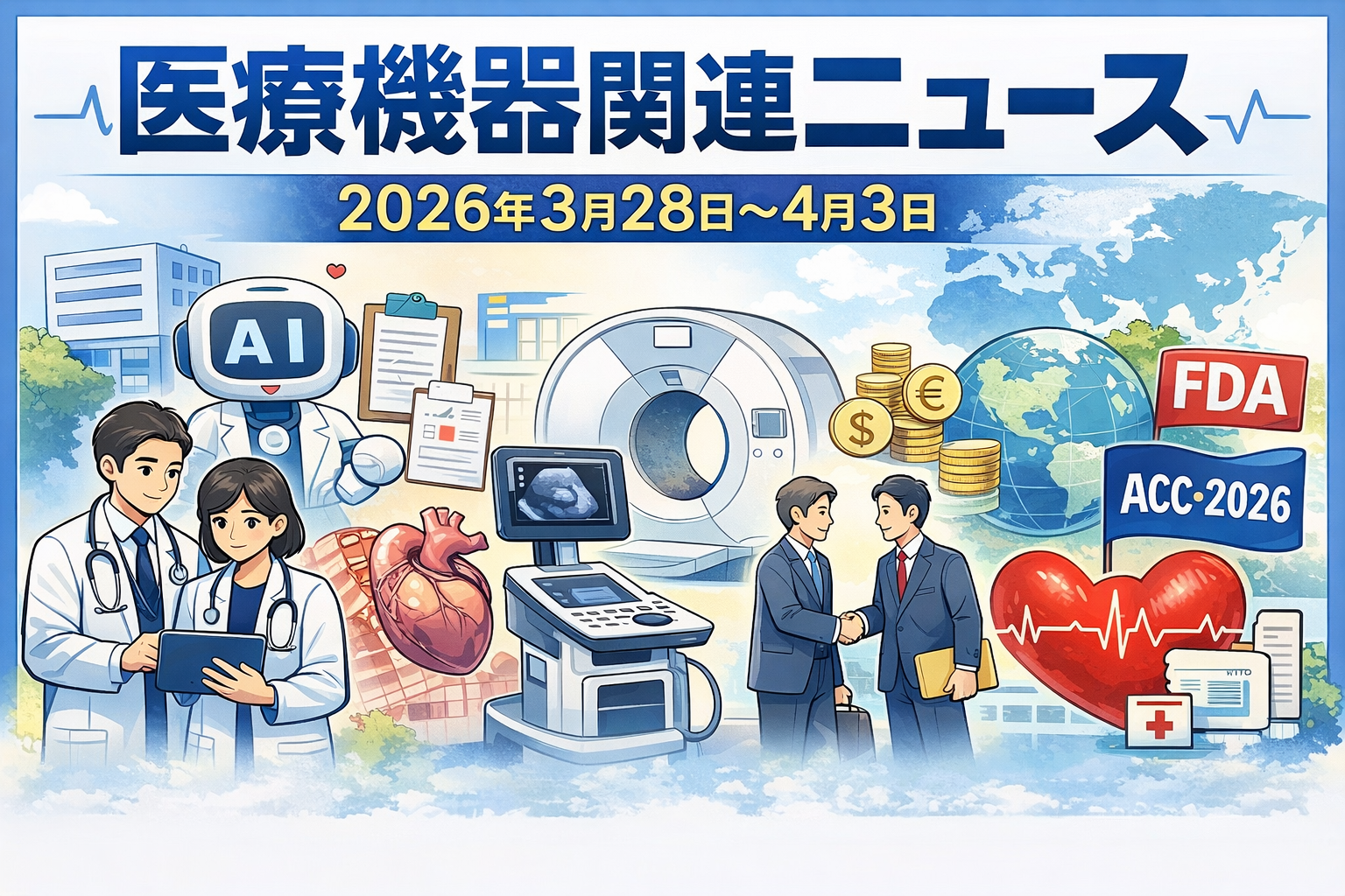 2026年2月第3週は、iPS細胞由来再生医療製品2品目の世界初となる条件・期限付き承認了承が大きな注目を集めました。国内ではPMDA医療安全情報の発出や複数のクラスII回収、生成AI活用に関するシンポジウム・実証プロジェクトなど、安全対策とSaMD実装の動きが進展しています。海外ではDanaherによるMasimo買収発表やMedtronicの好決算など大型案件が相次ぎ、グローバル市場の再編と技術革新が加速する一週間となりました。
